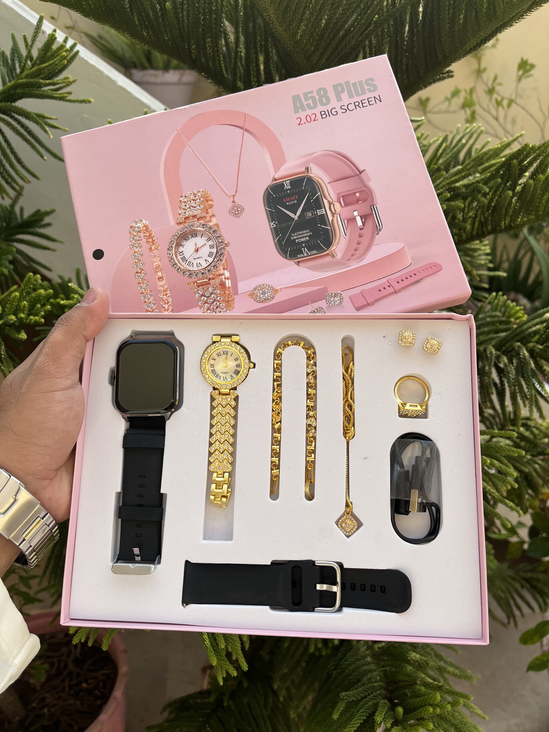 A58 Plus Ladies Smartwatch Gift Set – 2.02” Big Screen | 8-in-1 Premium Gift Box 🎁